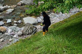 お父さん方は足場の悪いところも草払いをして下さいました。