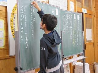 今回の議長と書記は4年生です。議題は「あいさつをもっとよくするために」。