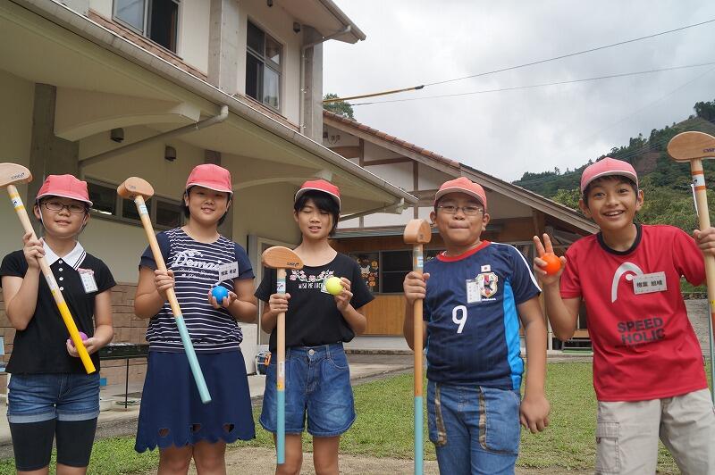川から上がったら、グラウンドゴルフをしました。グループに分かれて競いました。