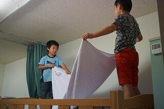 2日目の朝です。部屋の片付けです。女子チーム、すばやく終わって