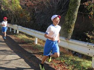 運動場を回ってから、道路へ。学校前の橋まで走って折り返します。ゆるやかでも、坂道はキツい!