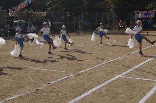 開会式後はエール交換。そして、応援。陽の届き始めた運動場で躍動します。