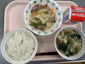 麦ごはん 豚肉のしょうが炒め なめこ汁