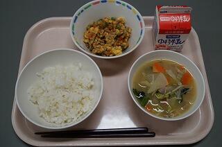 椎茸のそぼろ丼    かぼちゃ団子汁