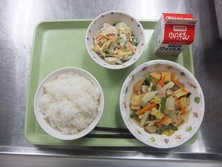 麦ごはん 豚肉と厚揚げのみそ炒め マカロニサラダ