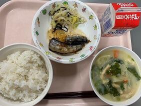 麦ごはん 塩昆布和え いわしおかか煮 ご汁