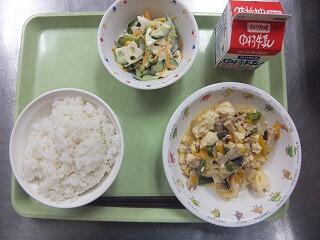 麦ごはん 炒り豆腐 レンコンのマヨネーズ和え