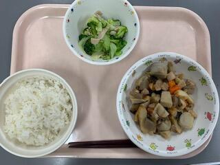 麦ごはん  グリーンサラダ  鶏のうま煮