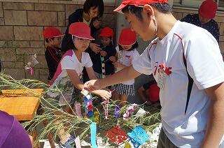 みんなで願いを込めた短冊と自分たちでつくった七夕かざりを