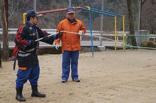 まず、粉末消火器の使い方を教えていただき、体験しました。