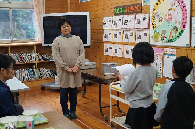 さっそく、養護教諭の先生が、給食時間に給食の歴史等について