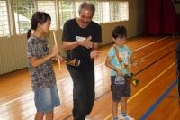 この後は、劇の中に出てくるアフリカの曲を、いっしょに演奏したり、手拍子をしたりしながら歌いました。