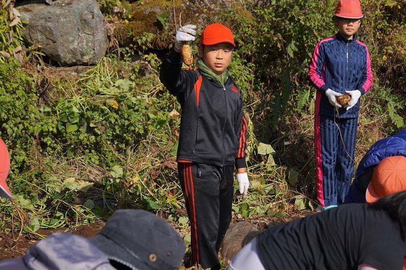 13日(月)に保育園と合同で学校園の芋掘りをしました。
