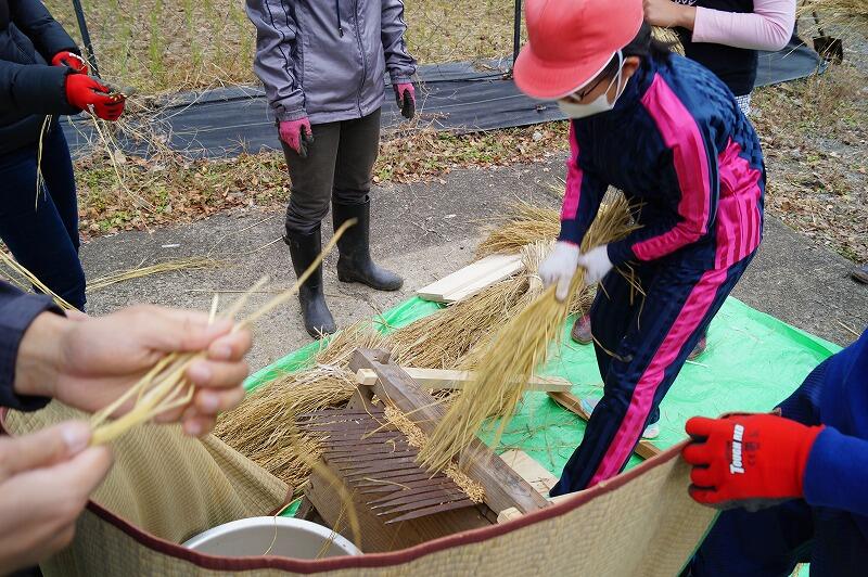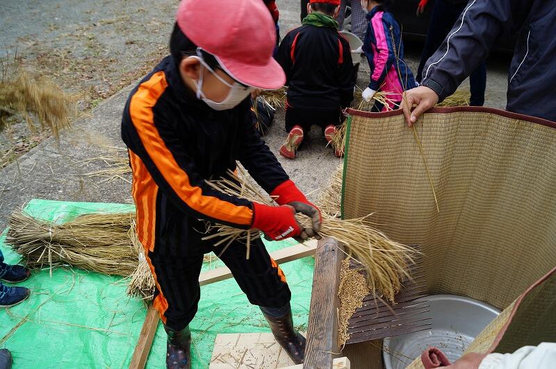 今回は、地域の方々に協力をいただき、昔から伝わる農具での脱穀にチャレンジです。