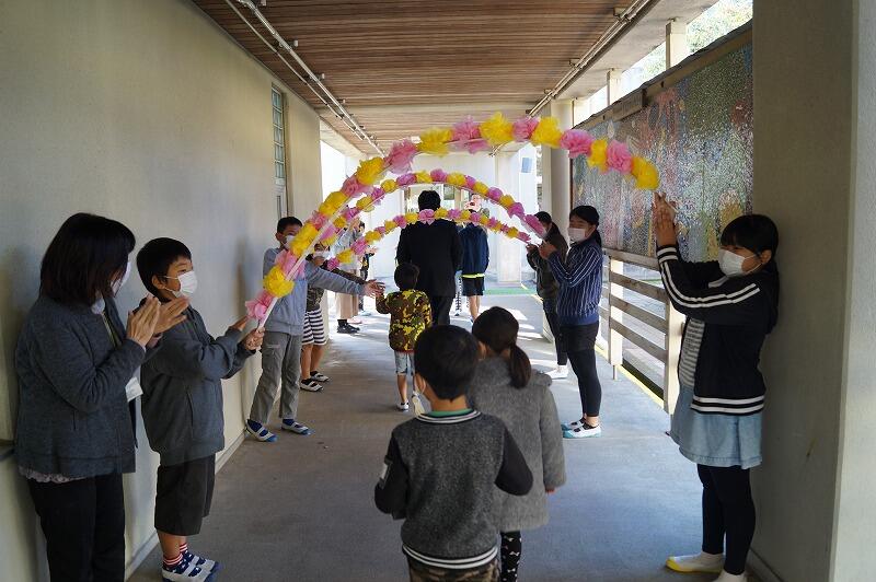 檍北小学校の教頭先生が紹介をしてくださり、児童代表が歓迎の言葉で迎えてくれました。