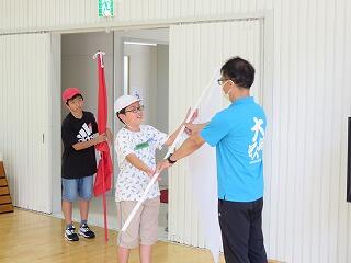 赤、白が決まり、校長先生から団旗をもらいました。気分が高まります。