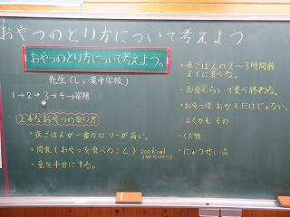 3・4年生が、食育の学習に取り組んでいました。テーマは「おやつのとり方について考えよう」です。