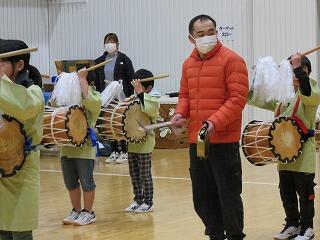 臼太鼓保存会の方々に来ていただいて、合同練習をしました。お家の方々にもご協力いただいて、子どもたちの衣装合わせもしました。
