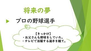 そのために、中学校へ進学したら野球部に入部し、うまくなれるように練習をがんばっていくつもりです。
