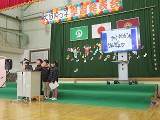 5・6年の発表。「春はあけぼの」の暗唱や家庭科でつくった作品の紹介など、さすが高学年らしい難しい内容の発表でした。
