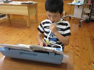 難しそうですが、タブレットパソコンの画面をさわりながら直感的に動かせるので、子どもたちはすぐに慣れました。プログラムした仕組みがうまく動いて思わず拍手!