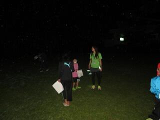 暗がりの写真しかありませんが、「星空観察」をしています。近くに高い山のない青島青少年自然の家では、空全体を広く見ることができます。大河内とはずいぶん違う空です。