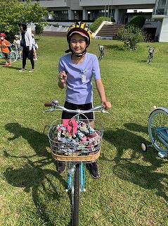 ずらりとならんだ自転車。お家の方々が持ってきてくださいました。高学年と低学年が並ぶと、やっぱりずいぶんと大きさの差がありますね。