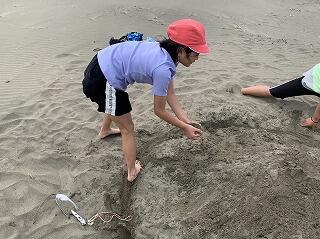 宿泊学習2日目の午後は、「砂の造形」をしました。広くてきれいな砂浜を、思う存分、掘り、運び、積み上げました。