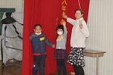 子ども一人一人に修了証が渡されました。代表児童の発表では、1年間のがんばりや次
