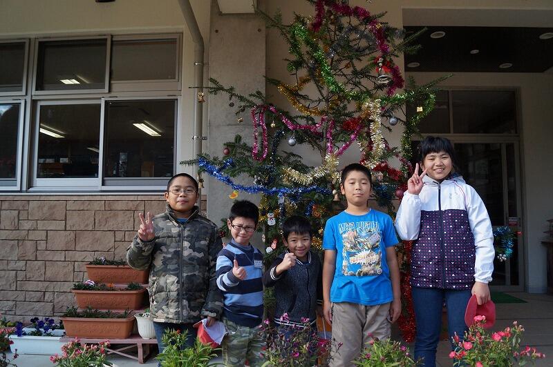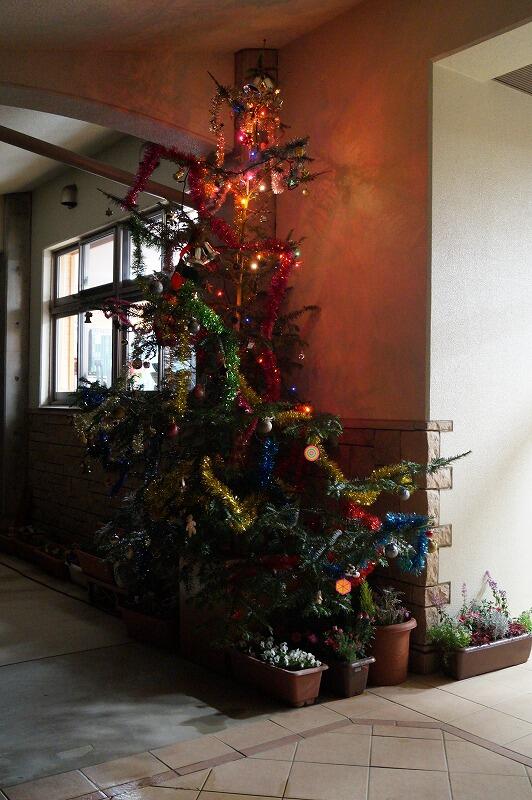昨日は、この冬初めての雪が舞って、寒さの増した12月6日学校の玄関前にクリスマスツリーが完成しました。