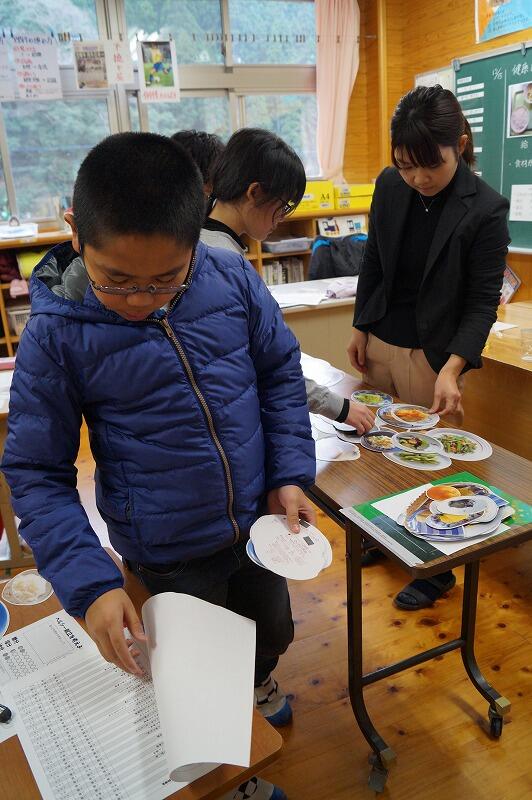 5・6年生は、合同で食育の学習をしました。養護教諭に協力していただき「健康を考えよう」とバランスの取れた食事メニューを考える授業でした。食べたいというだけでなく、カロリーや塩分などのバランスを取りながら一日一日の食事を組み立てることが大切だと学びました。