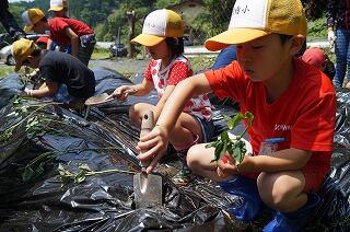 しっかり苗を植えます。(小学生のお兄さん、お姉さんのまねして