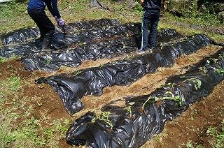 マルチに穴を開けて。(何かでてこないかなあ~)