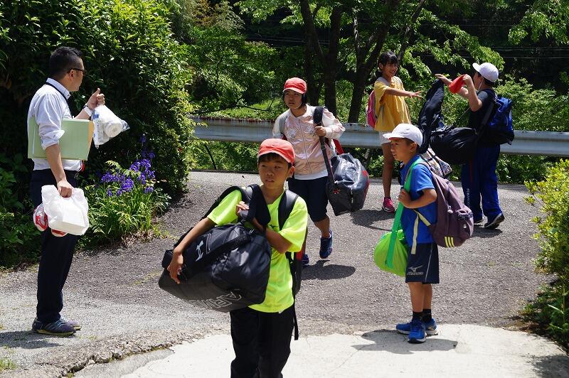 到着を首を長くしながら待ちました。7名の児童全員でお出迎えをしました。初対面のため、どことなく緊張した出会いとなりました。