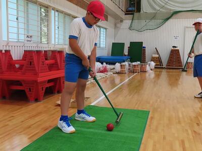 パラリンピックの競技にもなっている「ボッチャ」、そのボッチャのもとになった「ペタング」、その他「ターゲットボール」の体験をしました。誰にでも楽しめるゲームです。大河内っ子も楽しめたようでした。