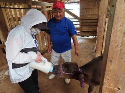 飲み盛りの子牛にミルクをあげる体験をさせていただきました。