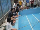 ての魚捕りです。子どもたちは一斉にプールに入り、大きな歓声を上げながら必死に魚を