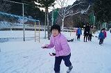 登校してきた子どもたちは、さっそく運動場で雪合戦でした。今日の雪は、パウダース