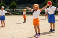 暑い中での練習となりましたが、いっしょに参加した保育所生も、小学生といっしょに、歌を歌ったり、ラジオ体操をしたり