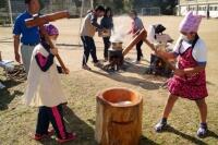 駅伝大会後は「もちつき」を行い、お母さん方が作ってくれた豚汁や山菜おこあ、赤飯とつきたてのおもちをおいしくいただきました。
