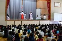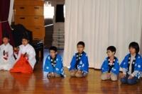 そして、4校時には体育館で「大河内の紹介」発表と「子ども神楽」を披露しました。