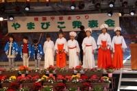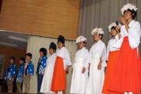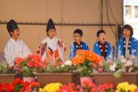 「子ども神楽」では、子どもたちは、ステージ上から見える約630名の児童の多さに、いつもとはちがう緊張を感じながらも、いつもどおりの舞を立派に披露してくれました。