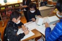 3年生は、「図鑑や書道セット、野球のバットや水の入ったふくろ」など身の回りにあるものの重さがどれくらいあるかを予想し、教室に用意された6種類のはかりの中から適当なものを選んで、それぞれのものの重さを量りました。