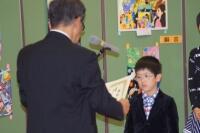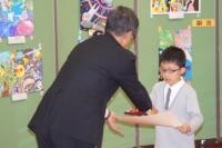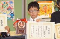 本年度、本校の1・2年生3名が応募し、1年生のSくんが銅賞,2年生のNくんが最優秀賞、Sくんが金賞を受賞し、今日の表彰式に最優秀賞と金賞を受賞した2年生が参加しました。