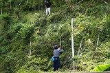 給食が終わると保護者は作業着に着替え、グランドに。午後からは奉仕作業です。今回は校舎南側から西側にかけての裏山の樹木の伐採とグランド周辺の除草を中心に作業していただきました。☆技ありの作業。かっこよかったですね。