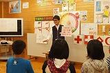 日本赤十字社宮崎支部の方に日本赤十字の「気づき・考え・実行する」という考え方や、活動の内容と大切さについてお話をいただきました。