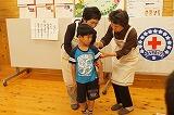 1年生として新たに青少年赤十字の一員となったYくんがバッジを付けてもらいました。