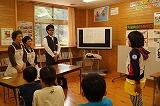 最初に、増水による水害の危険性があるという設定で避難訓練を行いました。「お・は・し・も」の約束を守って素速く避難することが出来ました。