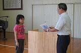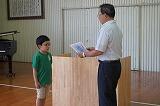 最後に、1学期のMVCの発表がありました。毎日大きな声で挨拶を心がけ、先輩としてのがんばりによって、大きく成長した姿が見られた2年生のSくんが選ばれ表彰されました。