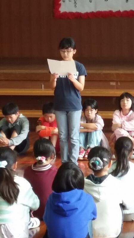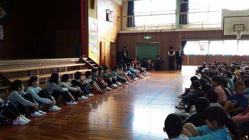 4時間目には、全校児童での歓迎集会を開いていただきました。